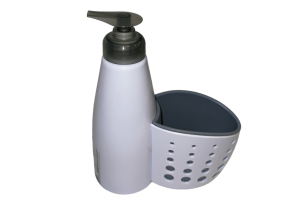 דיספנסר פלסטיק לסבון בשילוב מכסה מעץ